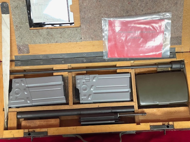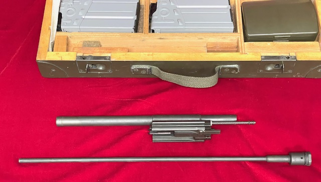 Includes 22LR Complete Bolt Carrier Group, 22LR Barrel, (2) 22LR Magazines, Cleaning Kit, Manual and in Factory Wooden Transit Case.